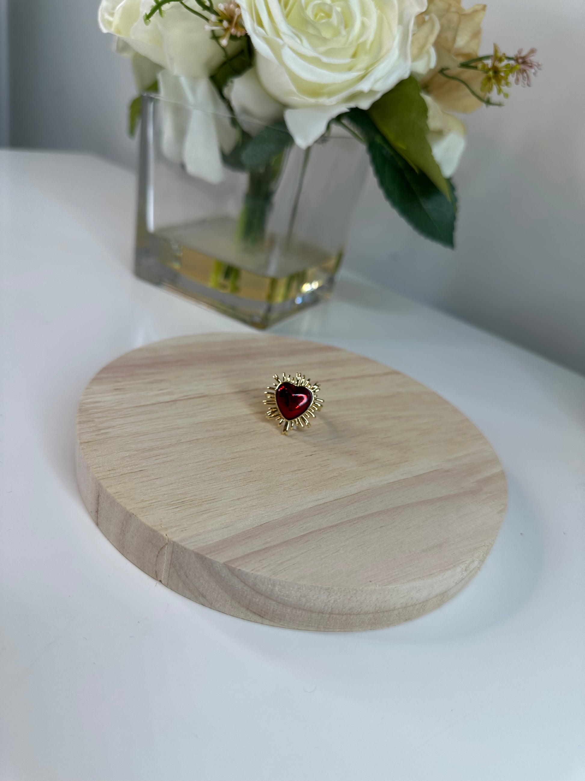 Hermoso anillo con detalles de corazón el color rojo